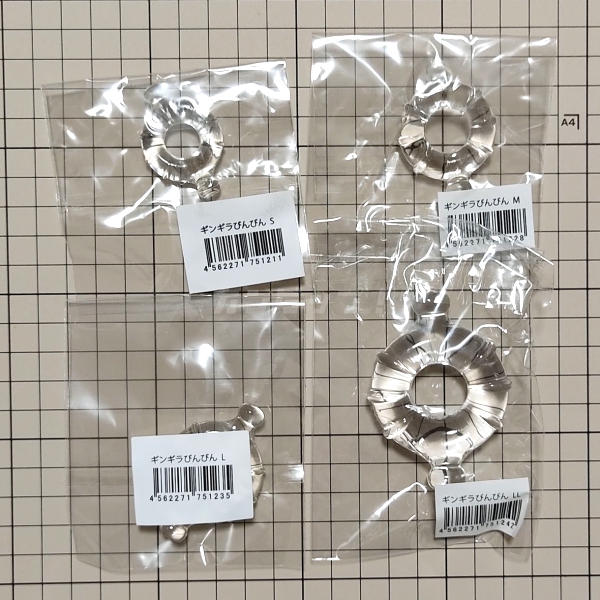 ギンギラびんびんのレビューと通販サイトの価格や最安値をリサーチ!コスパ良し・4サイズ展開から選べて適度な締め付け。クリアで存在感無く、つまみつきで調整しやすい。