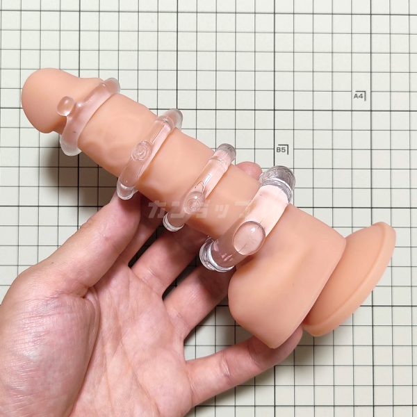ギンギラびんびんのリング表面には等間隔で輪っか状の凹凸が配置され、使用中のリングの回転を防止してくれます。