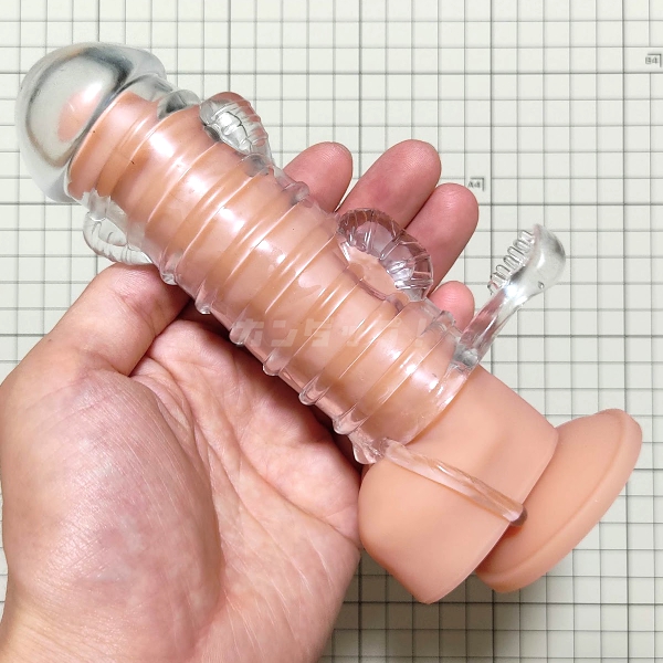 ペニスサックは男性のペニスの上にかぶせ、ペニスの大きさをかさ増しして、一瞬で巨根になれる夢のようなアイテム。