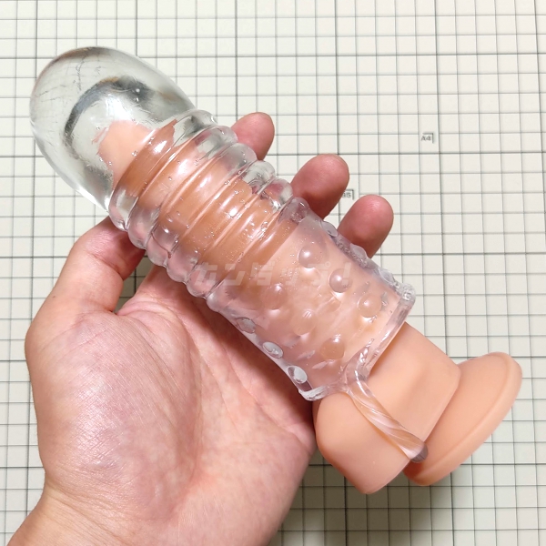 「超極厚ギガントサック」はとにかく分厚い。分厚過ぎて男性側は何にも感じないレベルで、サイズアップ効果は抜群ですが、勃起を維持するのはなかなか難しいです。