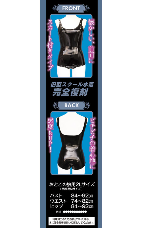 昔ながらの旧スクタイプのおとこの娘用コスチューム特殊な光沢加工で最高の輝きを ハイクオリティな光沢素材使用最高のフィット感がカラダを包み込む おとこの娘用2Lサイズ(男性用Mサイズ)バスト:84~92cm ウエスト:74~82cm ヒップ:84~92cm 続き