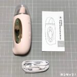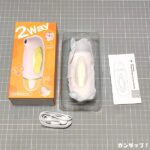 内容物の全て。本体と専用充電コード、説明書の3点です。