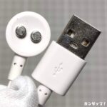 専用充電コード。電源側はUSB-A、機器側は専用マグネット式接点です。
