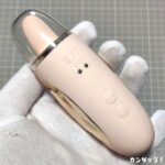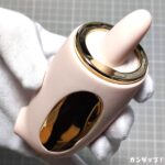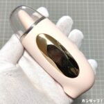 ハンズオン。全長13cm、横幅5cm、重さは137gです。表面はシリコンで持ちやすく滑りにくいです。ピンク基調、ゴールドのピンポイントで女性好みのデザイン。