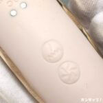 ボタン操作部。波の様なマークがベロベロ機能、長押しでオンオフ、短押しでパターン変更。花の様なマークが吸引機能、長押しでオンオフ、短押しでパターン変更。ベロベロと吸引は完全に独立して動作します。というか両方同時に使うシーンは想像できませんが。操作部上部には充電用接点があります。
