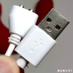 電源側はUSB-A、接点は独自のマグネット形式の充電ケーブルが付属します。