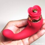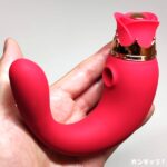 一厘の赤いバラをモチーフにした美しい曲線とカラーの上品なデザイン。アダルトグッズらしさを感じさせません。