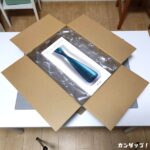段ボールを開くとA10サイクロンSA PLUSがしっかり緩衝材に囲まれています。今回はNLSの黒いフィルタでの目隠しはされていませんでした。