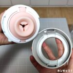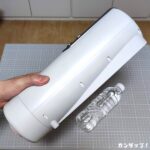 - ホールにローションを投入し、ディルドで慣らしました。動画では粘度の低いローションを使いましたが、これは非推奨です。挿入口を下にしたとき、ドバーっと垂れてきてパニックに陥ります。「VORZEスムースローション」のような粘度の高いローション推奨です。